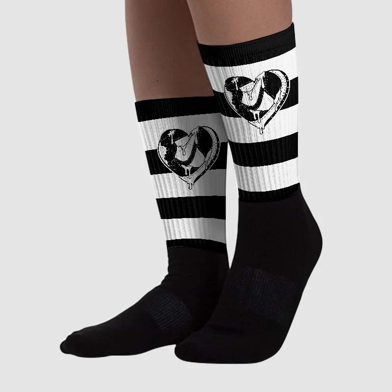 85 Black White 1s Sublimated Socks Horizontal Stripes Graphic