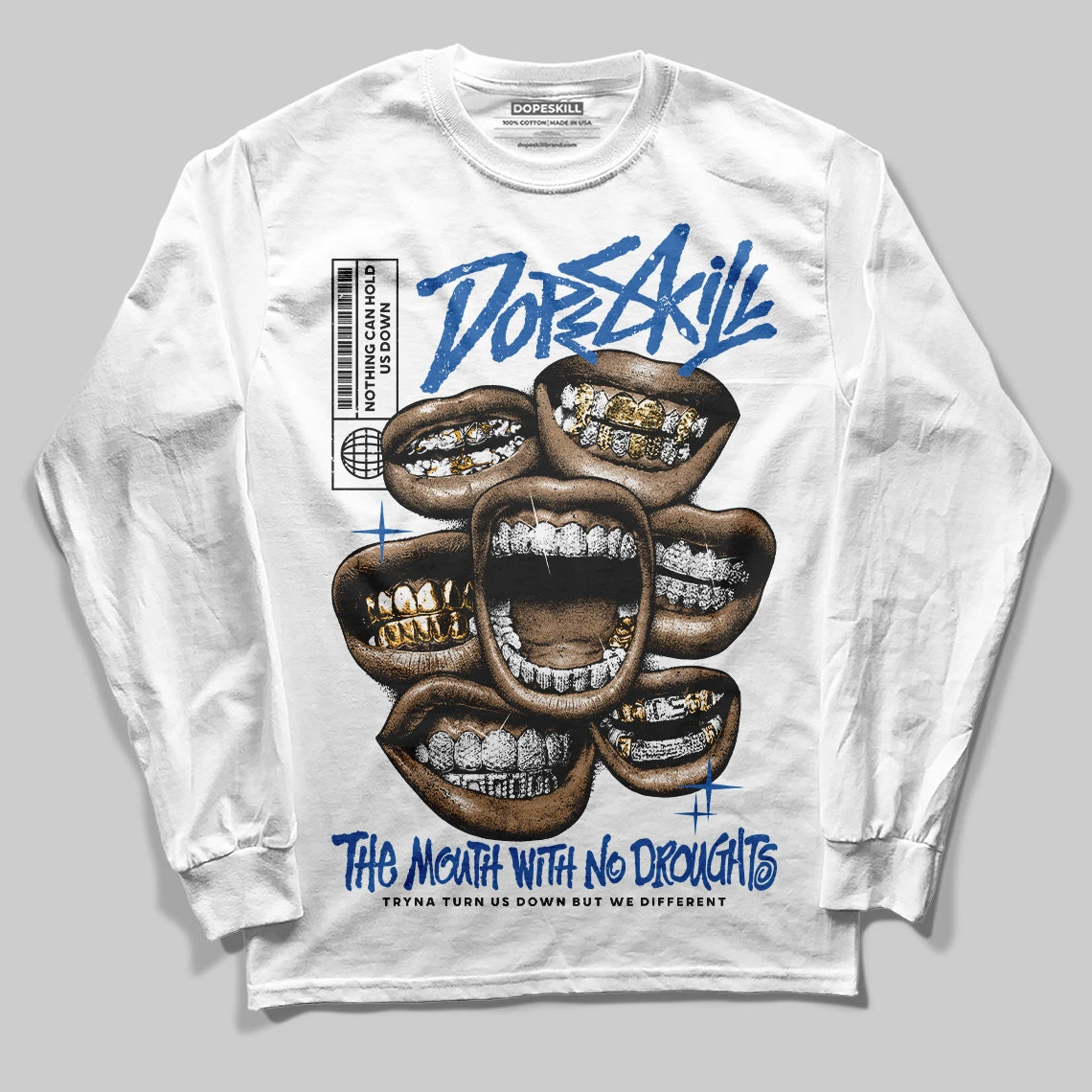 Blueberry 12s DopeSkill Long Sleeve T-shirt The Mouth With No Droughts Graphic