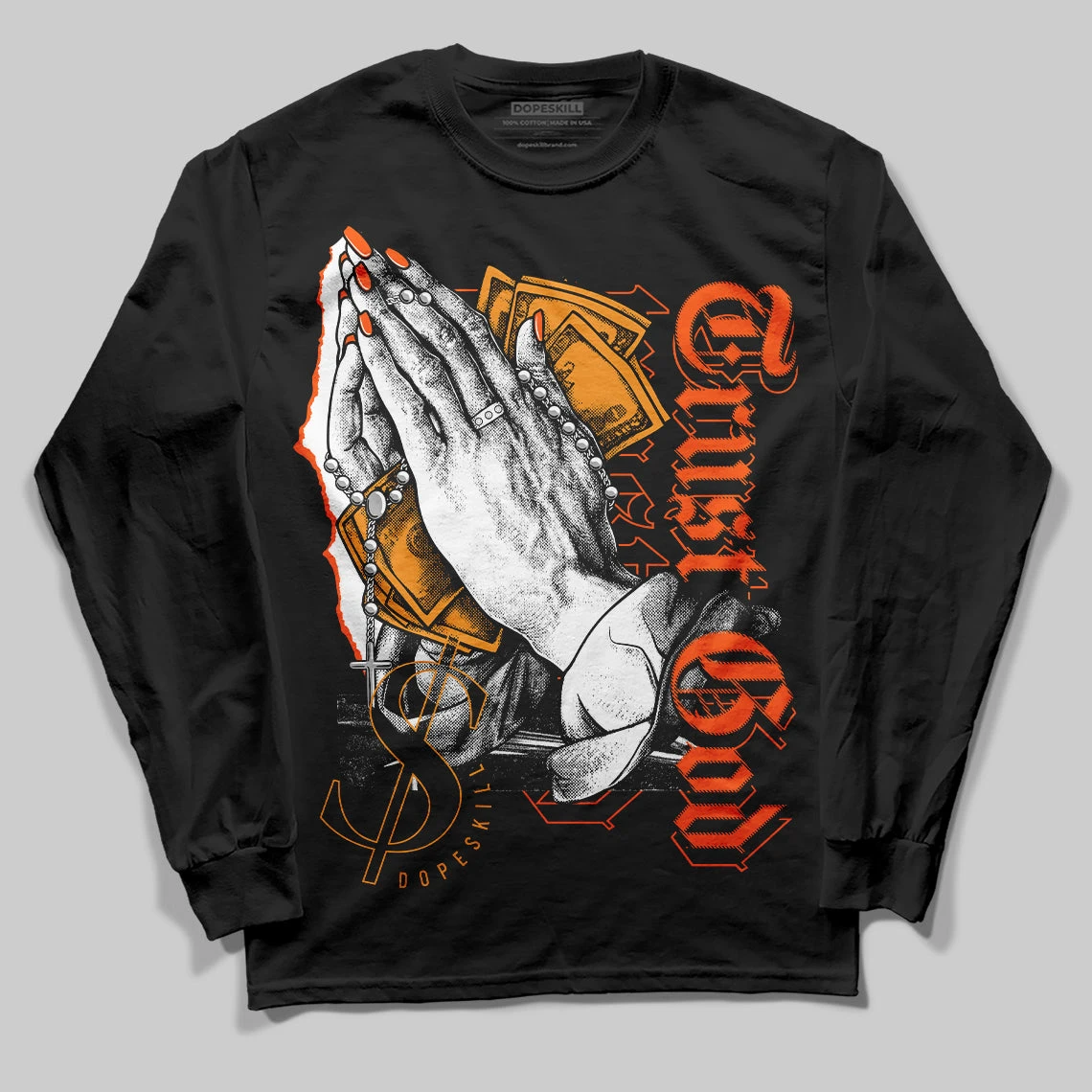 Brilliant Orange 12s DopeSkill Long Sleeve T-Shirt Trust God Graphic