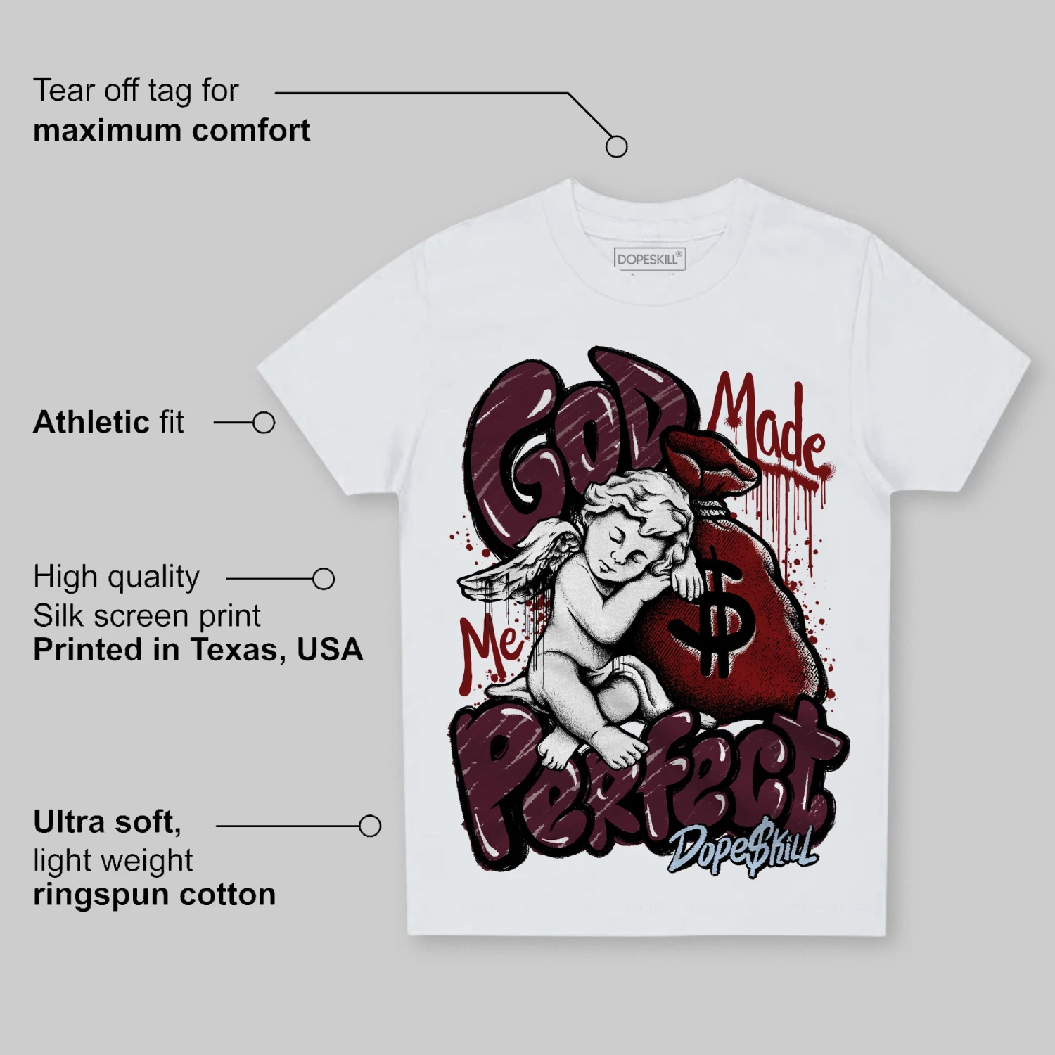 Burgundy 5s DopeSkill Toddler Kids T-shirt God Made Me Perfect Graphic