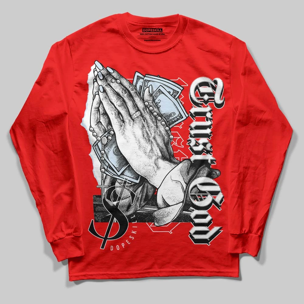 Cherry 11s DopeSkill Varsity Red Long Sleeve T-Shirt Trust God Graphic