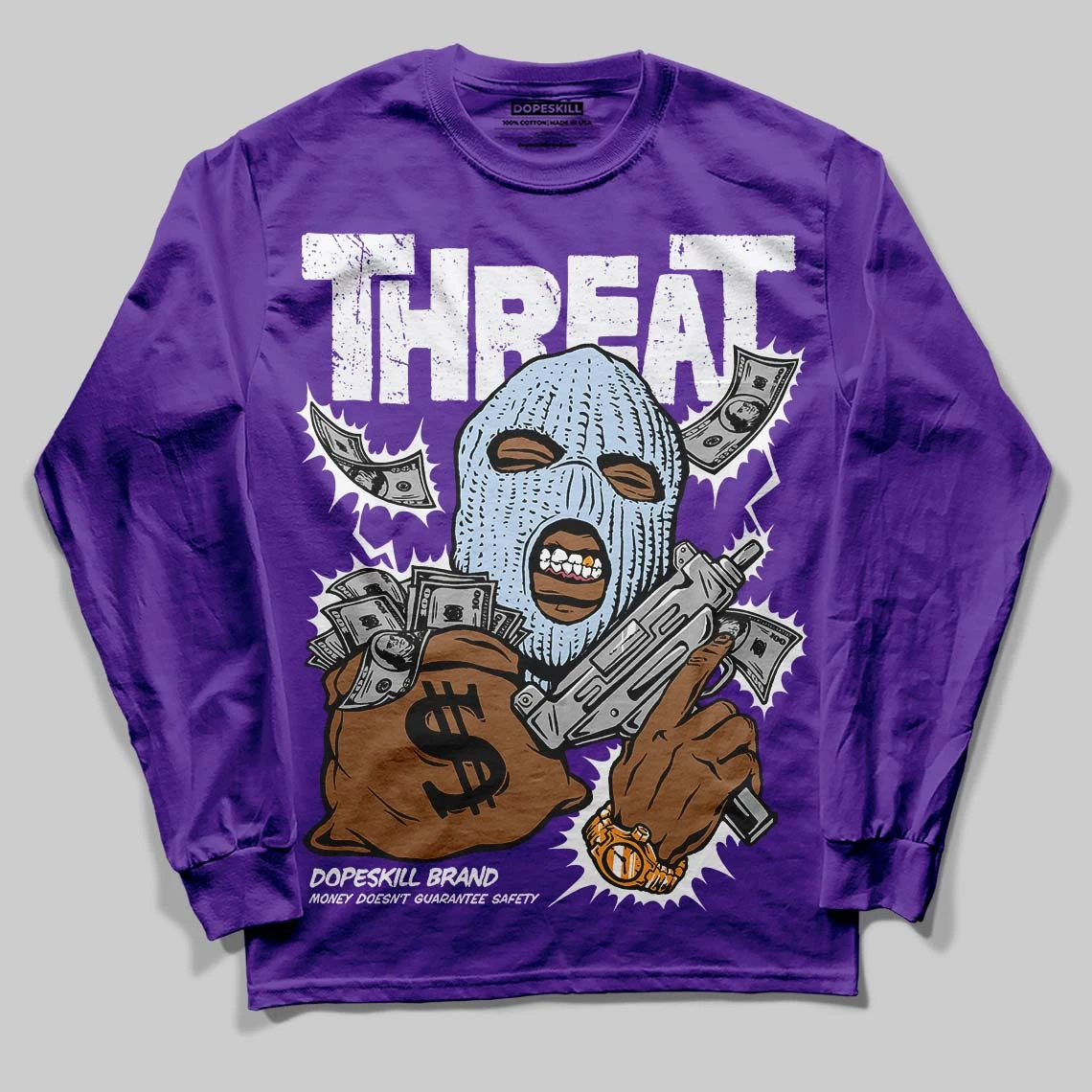 Grape 5s DopeSkill Long Sleeve T-Shirt Under Threat Graphic