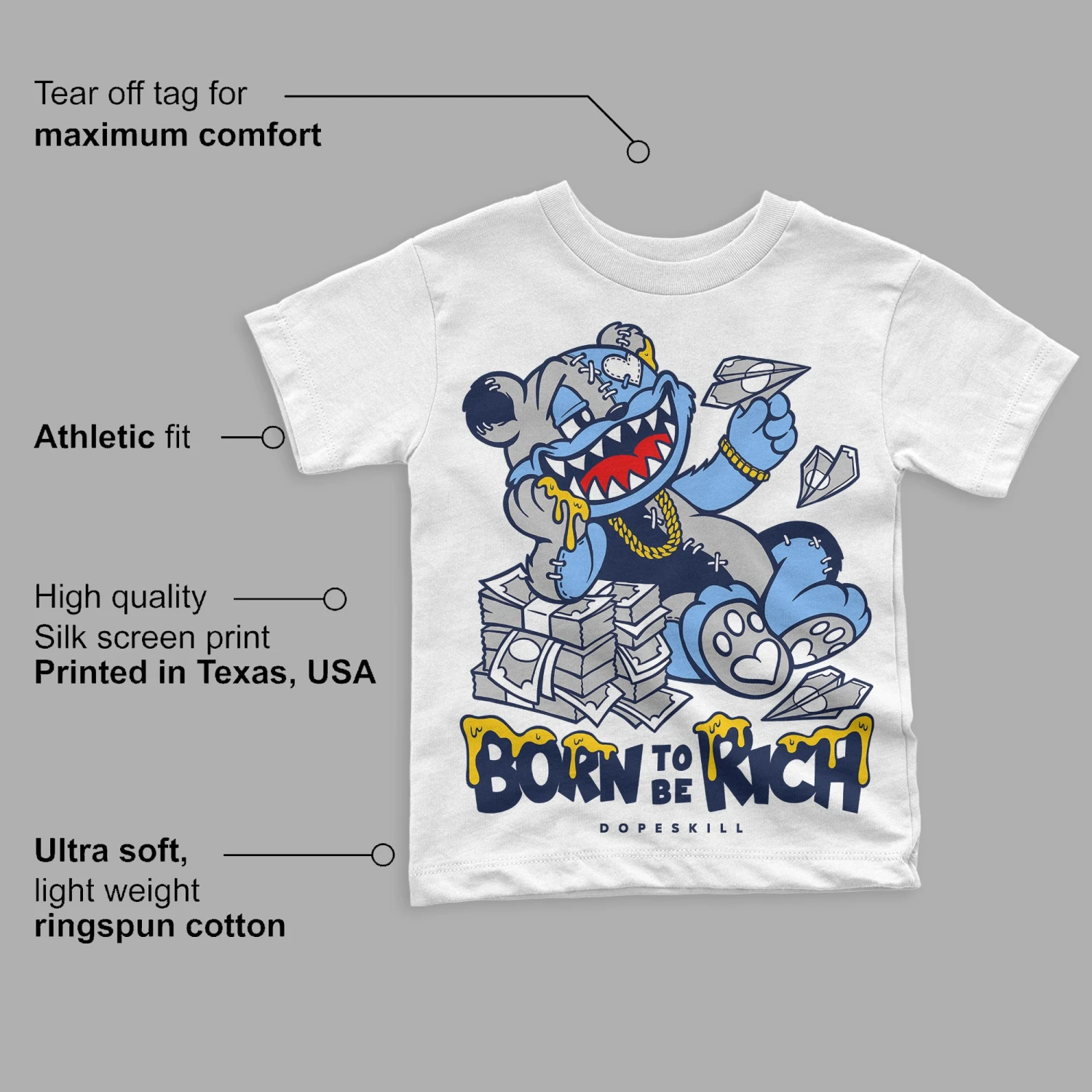 Our tees are 100% cotton tees with huge, high quality graphics printed on the front. We pride ourselves in providing the highest quality products for an affordable price! We really hope you find something on our site that you love and as always, we appreciate your support!
