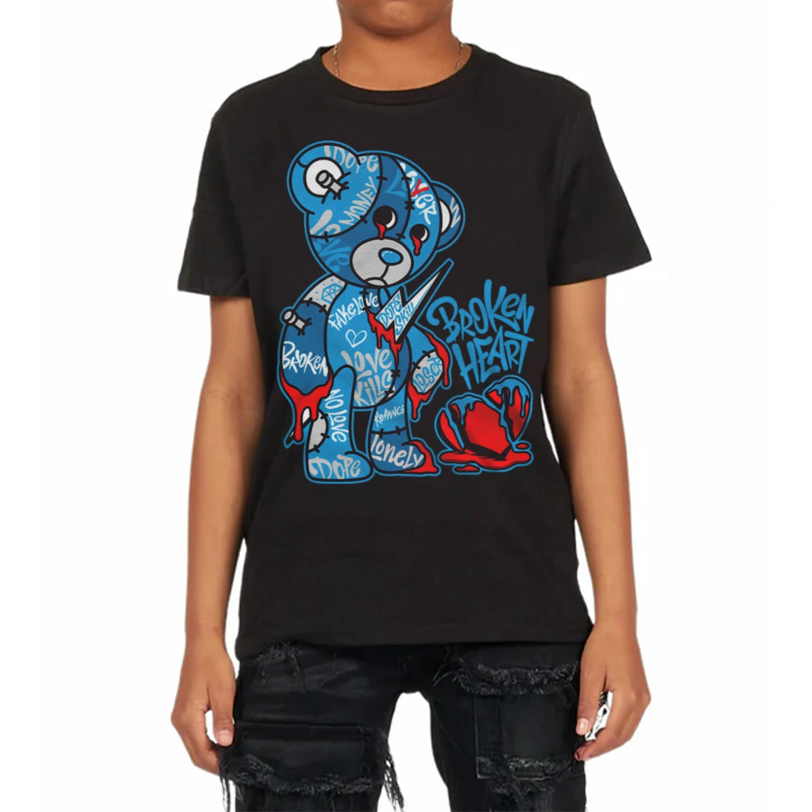 Military Blue 4s DopeSkill Toddler Kids T-shirt Broken Heart Graphic