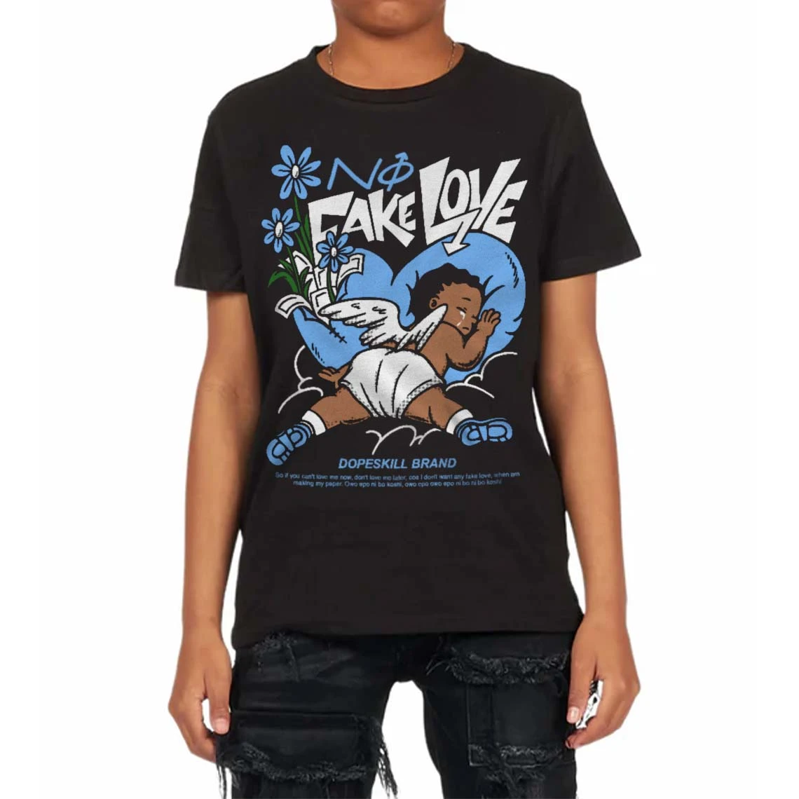 Powder Blue 9s DopeSkill Toddler Kids T-shirt No Fake Love Graphic