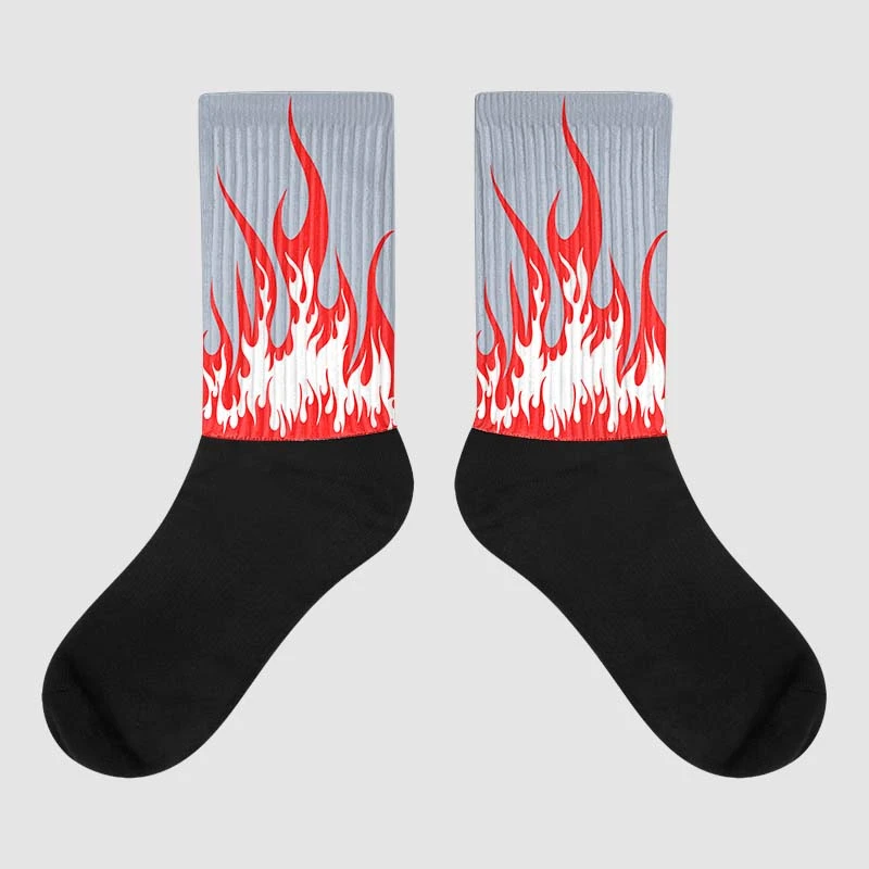 White Cement Reimagined 3s Sublimated Socks FIRE Graphic